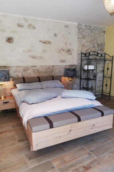 Chambre Pierre is een zeer ruime kamer van ca. 80m² en dankt zijn naam aan de authentieke natuurstenen (pierres) die zorgvuldig behouden zijn gebleven. Deze stenen zorgen er bovendien voor dat de kamer in de zomer aangenaam koel blijft.