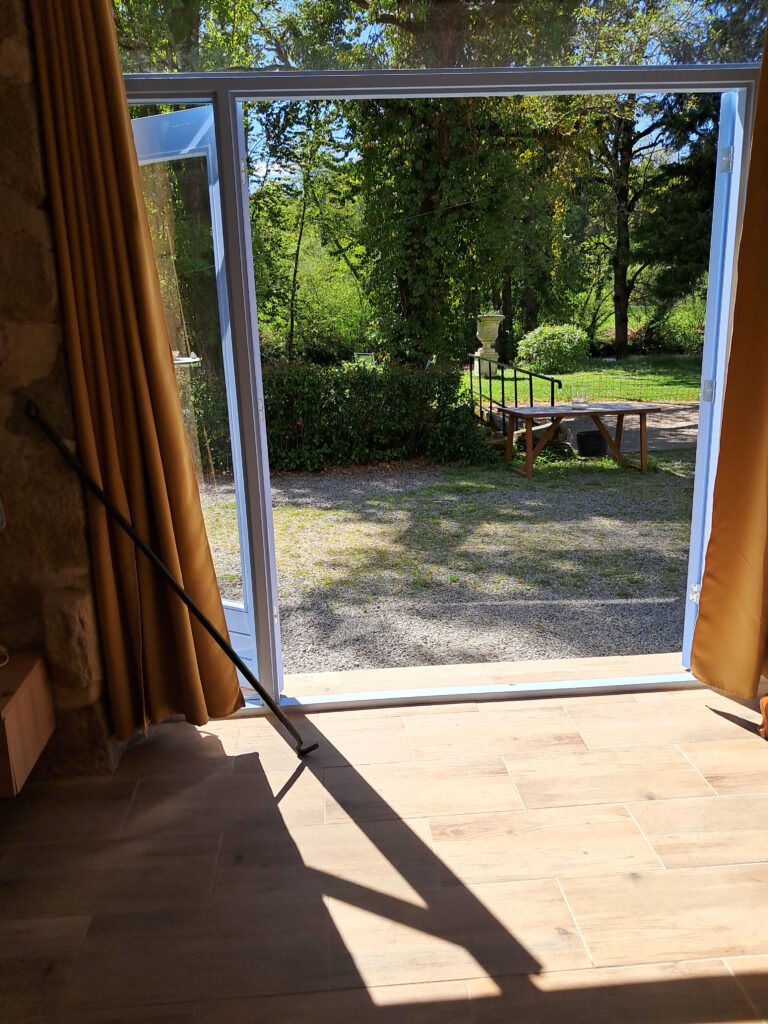 De kamer is gelijkvloers, heeft een prive ingang en is smaakvol ingericht. Vanuit uw kamer stapt u zo de prachtige tuin in, waar u kunt ontspannen of een verfrissende duik kunt nemen in de rivier de Creuse.